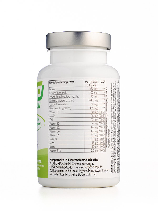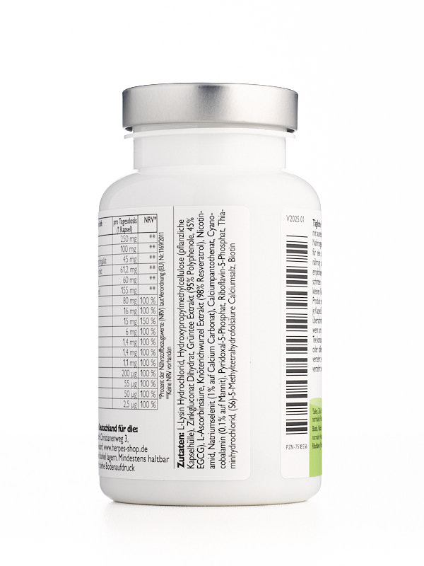 Nahrungsergänzungsmittel mit Aminosäure L-Lysin, Pflanzenextrakten, Vitaminen und Mineralstoffen