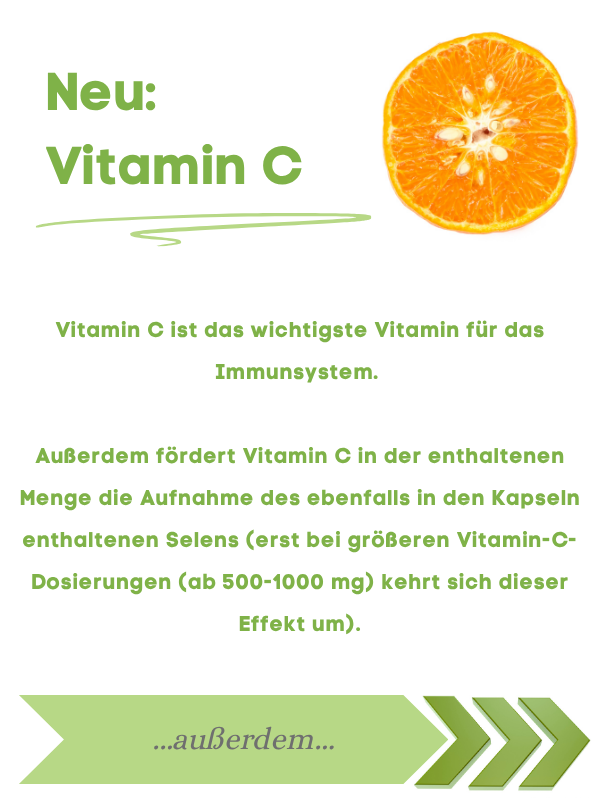 Selen, Zink, Vitamin C, Vitamin B6 und B12 sowie Folat (Folsäure) tragen zu einer normalen Funktion des Immunsystems bei.